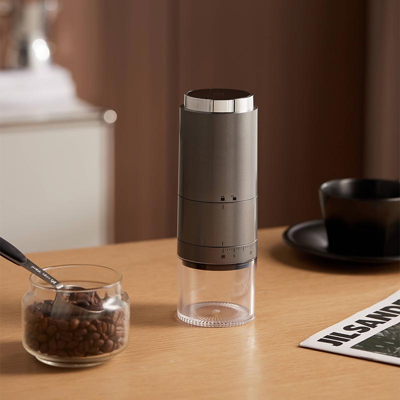 HB-989M, Přenosný mlýnek na kávu s dotykovým ovládáním, CNC jádro z nerezové oceli, LED obrazovka pro zobrazení elektřiny baterie, systém ovládání jedním dotykem. Nastavovací kroužek na vnější straně stroje, což je jedinečný design na trhu. Provedení s nízkou hlučností.